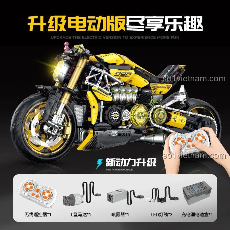 Có, bộ lắp ghép Xe máy Cyberpunk Quái vật GULY 60519 đi kèm với bộ điều khiển từ xa 2.4G, cho phép bạn điều khiển mô hình di chuyển một cách linh hoạt.