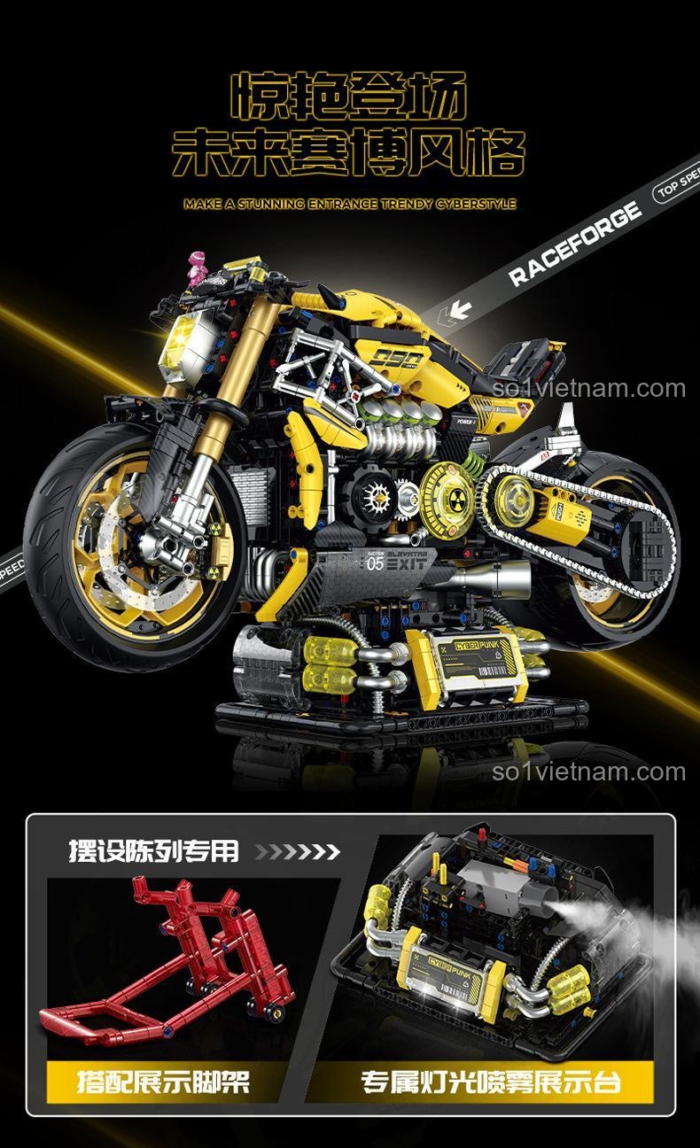 Chào mừng bạn đến với thế giới của những cỗ máy tương lai, nơi tốc độ và công nghệ hòa quyện! Bộ lắp ghép Xe máy Cyberpunk Quái vật GULY 60519 (Mã số: 60519) không chỉ là một món đồ chơi, mà là một hành trình khám phá đầy mê hoặc vào thế giới cyberpunk đầy cuốn hút. Với 2752 mảnh ghép tinh xảo, tỉ lệ 1:5 chân thực và khả năng điều khiển từ xa sống động, đây chắc chắn sẽ là món quà công nghệ đỉnh cao dành cho các tín đồ tốc độ và những bộ óc sáng tạo.