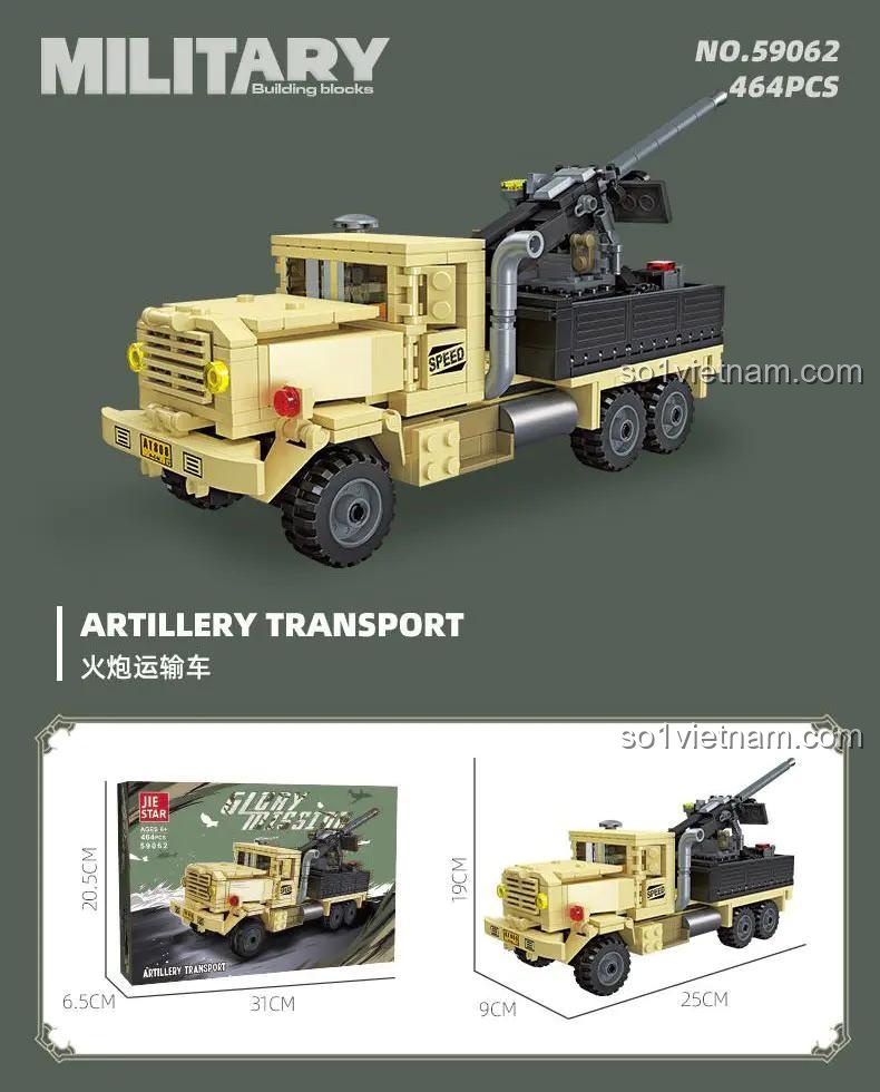 Chào mừng các chỉ huy nhí tương lai! Bạn đang tìm kiếm một món quà độc đáo, vừa mang tính giáo dục, vừa kích thích sự sáng tạo cho bé yêu nhà mình? Bộ Lắp Ghép Xe Pháo Vận Chuyển JIESTAR 59062 với 464 mảnh ghép chắc chắn sẽ làm hài lòng cả bé và bạn. Đây không chỉ là một món đồ chơi, mà còn là cánh cửa mở ra thế giới quân sự đầy hấp dẫn, nơi trí tưởng tượng và kỹ năng của bé được phát huy tối đa.
