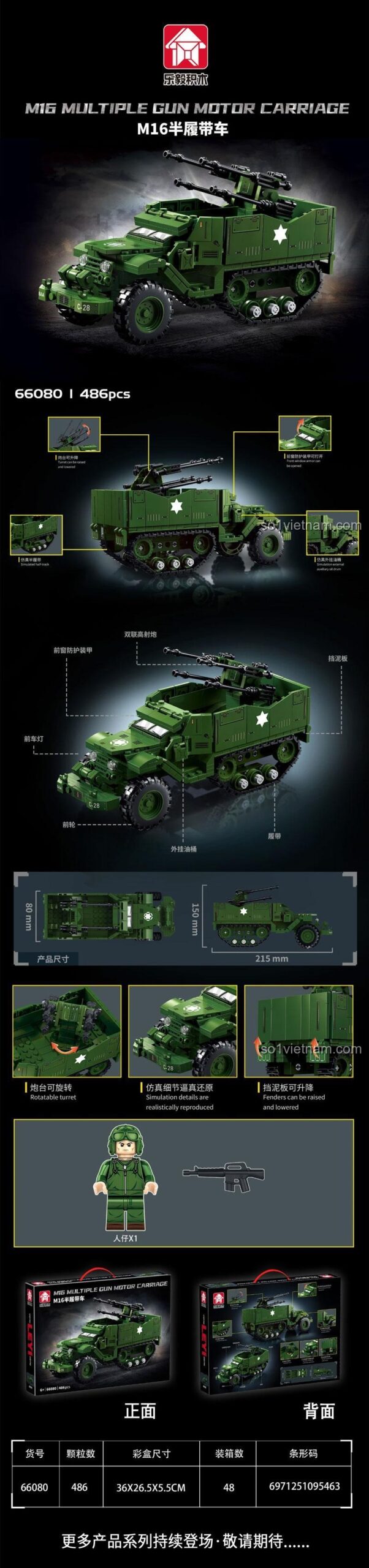 Chào mừng các chỉ huy nhí đến với thế giới chiến trường khốc liệt nhưng đầy hấp dẫn! Hôm nay, chúng ta sẽ cùng nhau chinh phục một biểu tượng của sức mạnh quân sự thời kỳ Thế chiến II: Xe Phòng Không Bán Cánh Của M16. Bộ lắp ghép 乐毅积木 66080 mang đến cho bạn cơ hội tự tay xây dựng một phiên bản mô hình chi tiết và sống động của cỗ máy chiến tranh huyền thoại này. Với 486 mảnh ghép cao cấp, sản phẩm không chỉ là món đồ chơi giải trí mà còn là công cụ giáo dục tuyệt vời, giúp bé phát triển toàn diện các kỹ năng cần thiết.