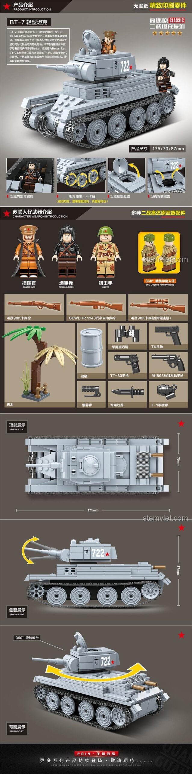 Hãy để bé thỏa sức sáng tạo và khám phá thế giới quân sự với bộ đồ chơi lắp ghép Xe tăng BT-7 100084. Đặt hàng ngay hôm nay để nhận được ưu đãi đặc biệt!