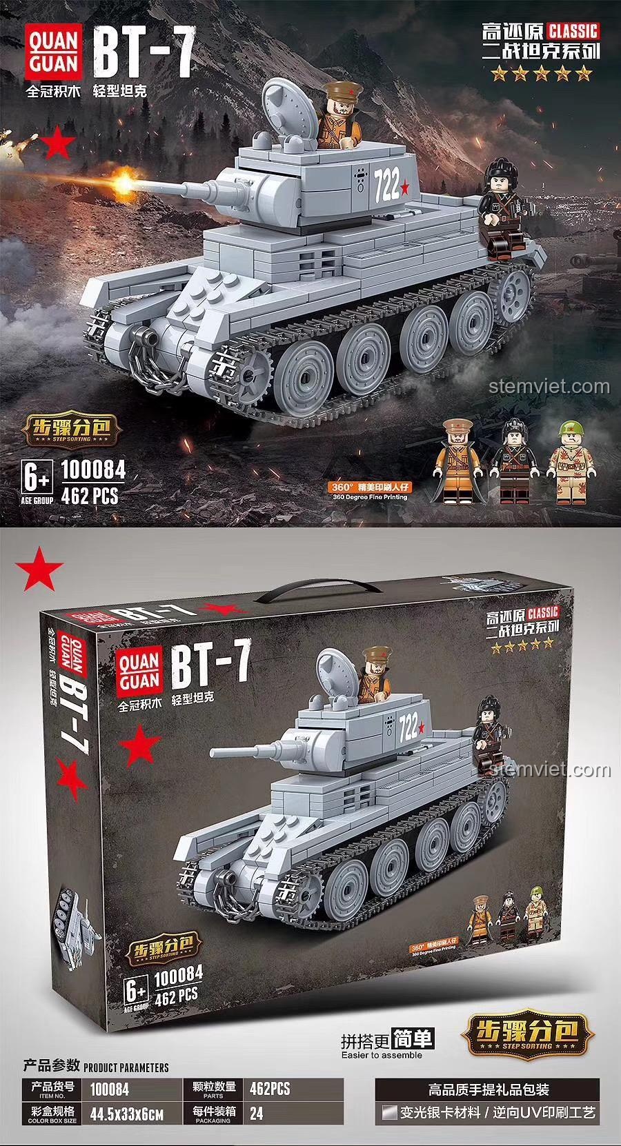 Hãy để bé khám phá lịch sử quân sự đầy hấp dẫn cùng bộ đồ chơi lắp ghép Xe tăng BT-7 100084 của QUANGUAN. Đặt hàng ngay để nhận được ưu đãi tốt nhất!