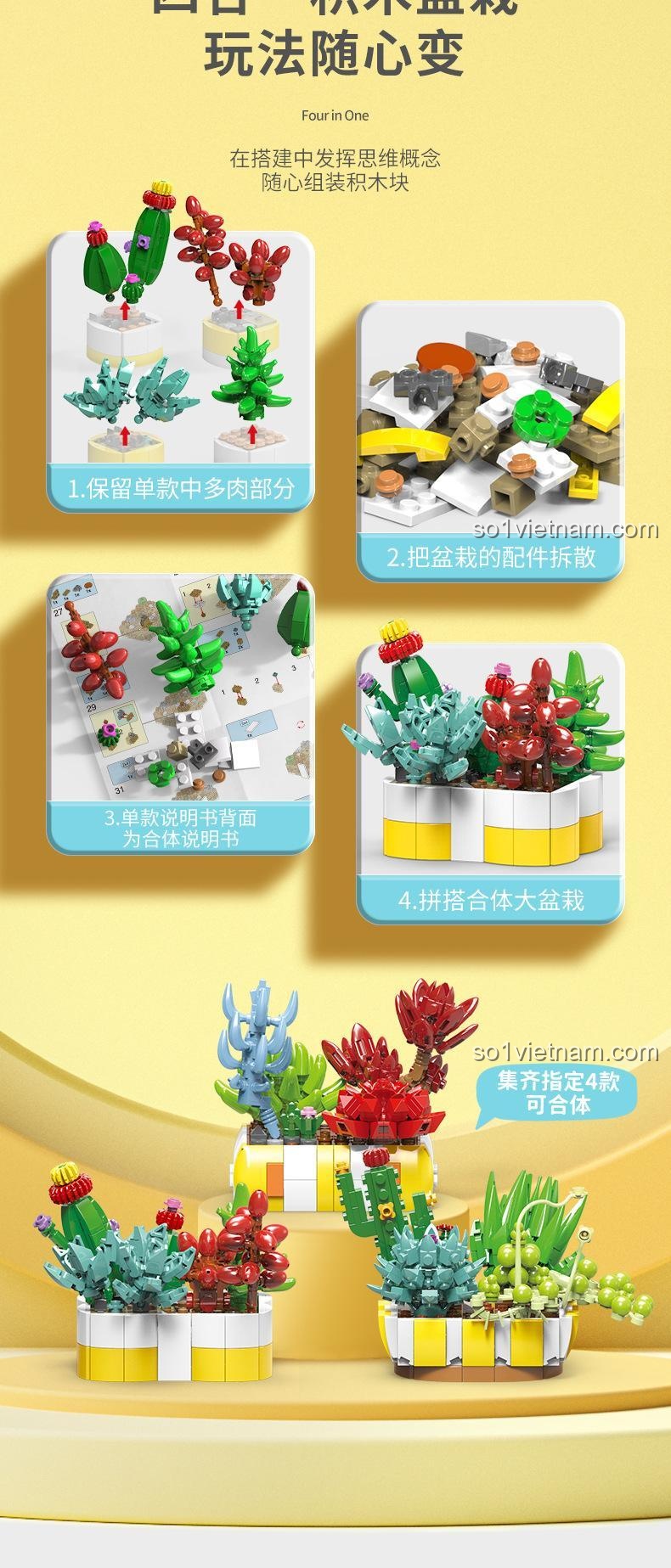 ✨ Tính Năng Độc Đáo: Khám Phá Sự Biến Hóa Của Bộ Lắp Ghép Cây Cảnh Mini Xương Rồng và Sen Đá 26113