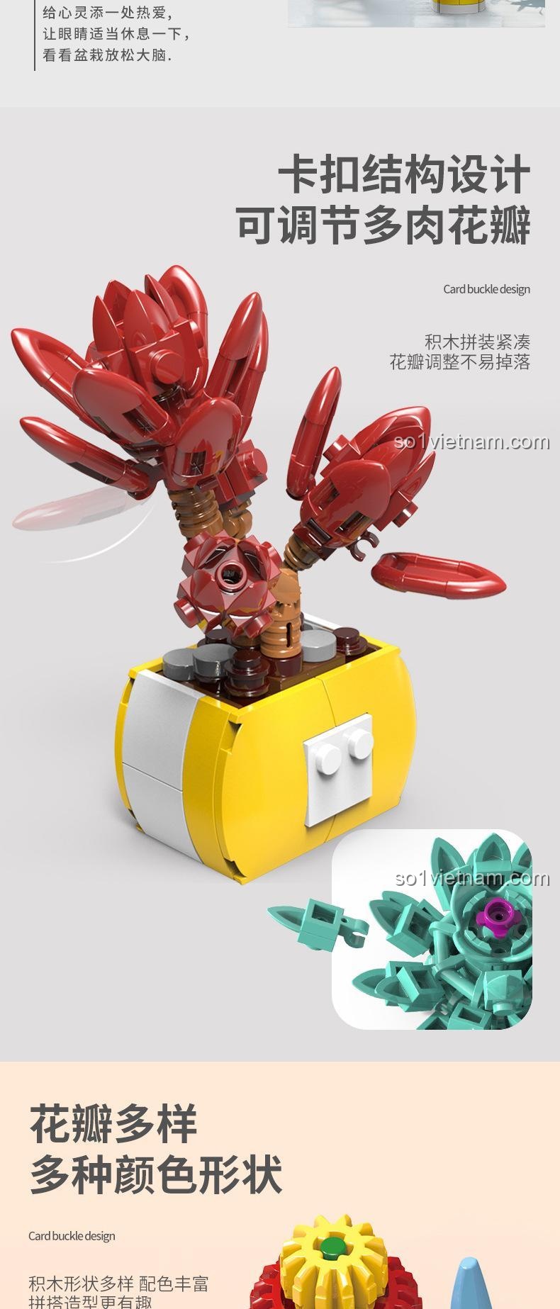 Điều gì làm nên sức hút đặc biệt của bộ đồ chơi sáng tạo Sen Đá Lắp Ráp? Đó chính là thiết kế tinh xảo và sự đa dạng đến bất ngờ. Bộ sưu tập này bao gồm 12 mẫu cây cảnh mini độc đáo, mỗi mẫu là một “kiệt tác” thu nhỏ với hình dáng, màu sắc và chi tiết riêng biệt. Từ những chiếc lá mọng nước của sen đá, những gai xương rồng sắc nét, cho đến những bông hoa nhỏ xinh điểm xuyết, tất cả đều được tái hiện một cách chân thực và sống động qua từng mảnh ghép.