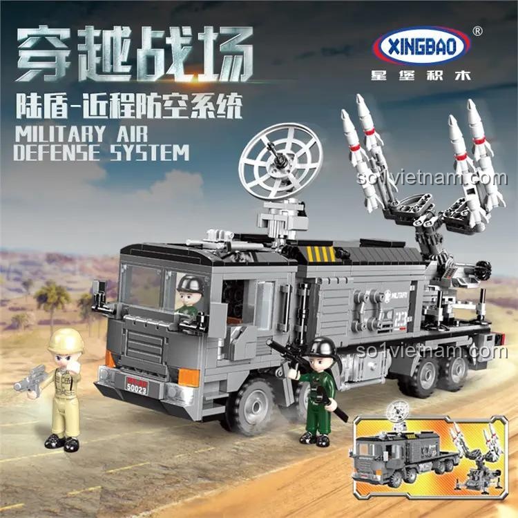 Ngay từ cái nhìn đầu tiên, bộ xếp hình Hệ thống phòng không quân sự Xingbao XB-50023 đã gây ấn tượng mạnh mẽ với thiết kế vô cùng chân thực và mạnh mẽ. Mô hình xe quân sự này được khoác lên mình hai màu sắc chủ đạo là xám và đen, tạo nên vẻ ngoài uy nghiêm, đúng chất của một cỗ máy chiến đấu. Với chiều dài mô hình khoảng 28cm, chiều rộng 11cm và chiều cao 16cm (khi radar được nâng lên), chiếc xe có kích thước vừa phải, đủ lớn để bé dễ dàng thao tác nhưng cũng không quá cồng kềnh. Từng mảnh ghép được gia công tỉ mỉ, tái hiện chính xác các chi tiết của một hệ thống phòng không hiện đại, từ cabin lái, thân xe bọc thép cho đến giàn phóng tên lửa và radar. Đặc biệt, bộ đồ chơi còn đi kèm 2 minifigures lính quân sự được trang bị súng trường và súng lục, sẵn sàng cho mọi nhiệm vụ. Các phụ kiện như tên lửa và radar được thiết kế tinh xảo, tăng thêm tính chân thực cho mô hình. Bé sẽ thích thú khi khám phá từng ngóc ngách của chiếc xe, từ những bánh xe hầm hố cho đến các chi tiết nhỏ trên thân xe, tất cả đều góp phần tạo nên một mô hình đồ chơi lắp ráp Xe phòng không 50023 hoàn hảo, kích thích cảm nhận thẩm mỹ và sự tập trung chi tiết của bé.