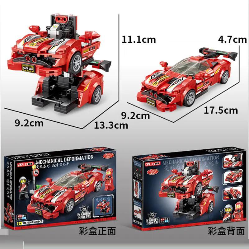 Bộ lắp ghép YIMU YM-77002 Siêu Xe Biến Hình Ferrari 488 (407 mảnh ghép) – Biến Hình Đỉnh Cao và Biến Hình 2 Trong 1