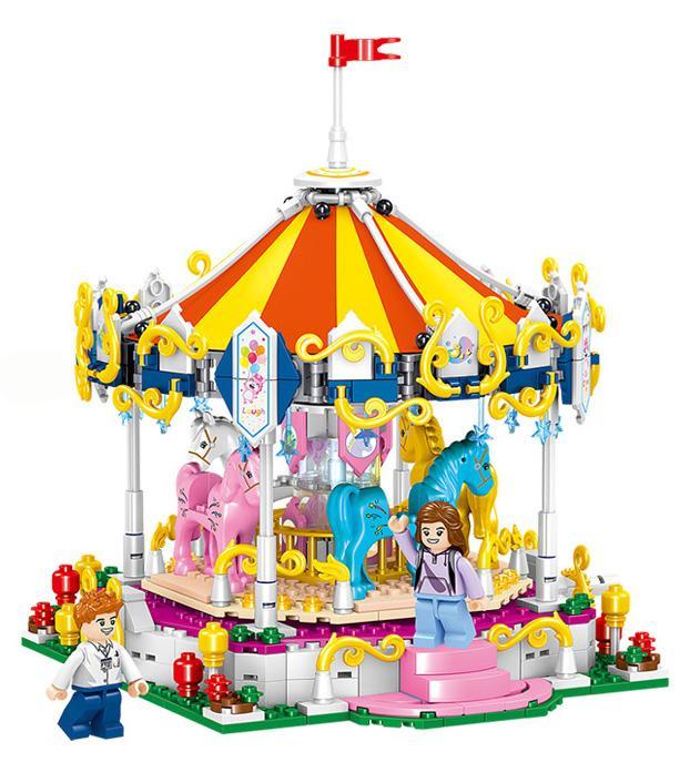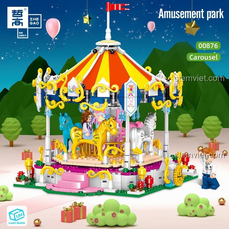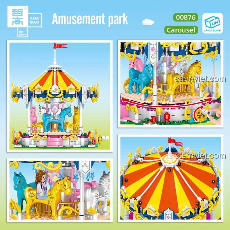 bộ lắp ghép Zhe Gao 00876 Vòng Đu Quay Ngựa Gỗ Công Viên Giải Trí (790 mảnh ghép) – Thế Giới Cổ Tích và Xoay Tròn Cơ Học