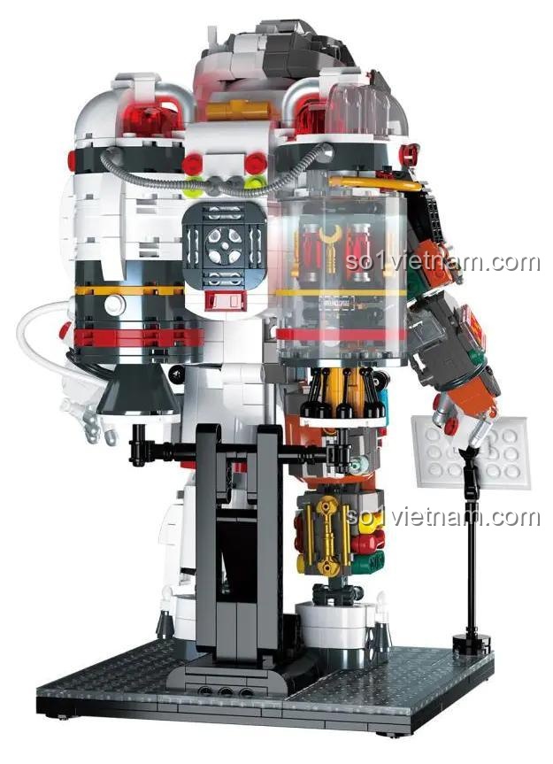 Mô hình Phi Hành Gia ZHEGAO 632000 là một kiệt tác thiết kế, thể hiện sự tỉ mỉ và tinh xảo trong từng chi tiết. Với chiều cao 27.5 cm, chiều rộng 19.2 cm và chiều dài 16.8 cm, mô hình này có kích thước ấn tượng, đủ để trở thành điểm nhấn nổi bật trong bất kỳ bộ sưu tập nào. Màu sắc chủ đạo là Trắng, Xám, Đen, kết hợp với các điểm nhấn Cam và Vàng, tạo nên vẻ ngoài hiện đại, mạnh mẽ và đầy tính công nghệ của bộ giáp phi hành gia. Từng bộ phận của bộ giáp được tái hiện chân thực, từ mũ bảo hiểm vàng óng ánh đến các chi tiết ống dẫn, nút bấm và bảng điều khiển phức tạp. Khớp nối linh hoạt cho phép tạo nhiều tư thế hành động, từ đứng nghiêm trang đến chuẩn bị cất cánh hay thực hiện nhiệm vụ ngoài không gian. Đặc biệt, mô hình còn đi kèm một robot mini Bền Bền, người bạn đồng hành không thể thiếu trong các cuộc phiêu lưu vũ trụ, tăng thêm tính tương tác và khả năng kể chuyện cho đồ chơi lắp ráp Robot Bán Cơ Khí này. Mỗi mảnh ghép đều được chăm chút, đảm bảo độ chính xác cao, mang lại trải nghiệm lắp ráp mượt mà và thành phẩm hoàn hảo.