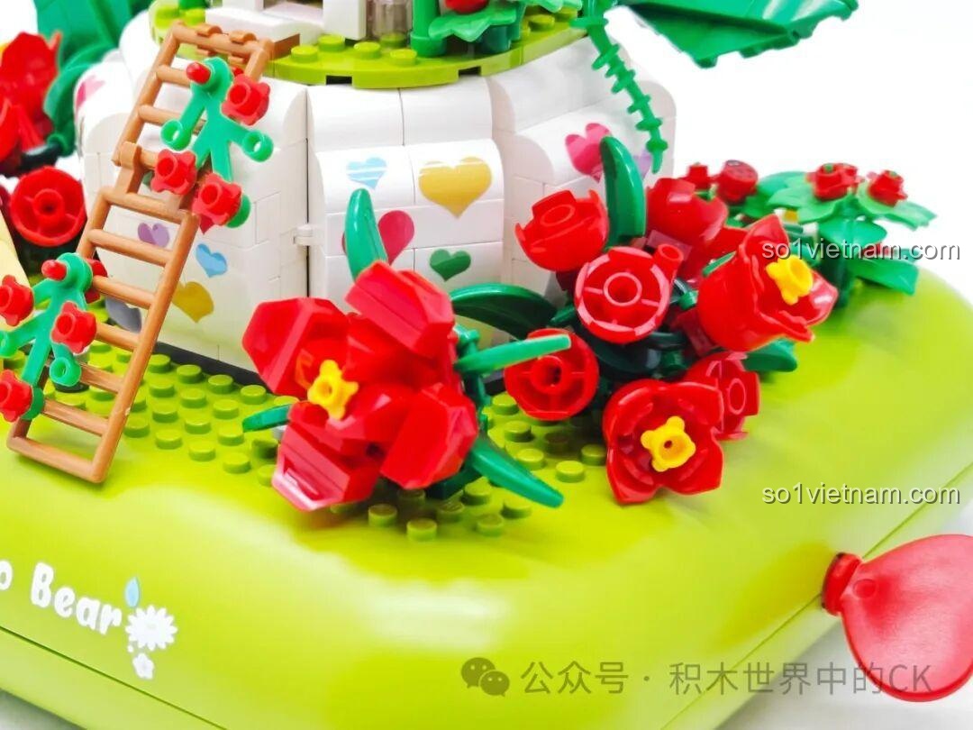 Ngôi nhà chim hoa ZHEGAO 663014 là một kiệt tác thu nhỏ, được chế tác tỉ mỉ với 696 mảnh ghép mini, mang đến độ chi tiết cao và vẻ đẹp tinh xảo. Mô hình gấu mầm 663014 này nổi bật với sự kết hợp hài hòa của các màu sắc chủ đạo như Xanh lá tươi mát của cây cối, Đỏ rực rỡ của những đóa hoa hồng và quả mọng, Trắng tinh khôi của ngôi nhà chim, Vàng ấm áp của chú Gấu Mầm và chim nhỏ, cùng Nâu mộc mạc của chiếc thang và cánh cửa. Với kích thước lý tưởng 18.2 x 17.2 x 16.9 cm, bộ lắp ghép 3014 này dễ dàng trưng bày và trở thành điểm nhấn đáng yêu trong phòng bé. Mỗi chi tiết của đồ chơi xếp hình 014, từ mái nhà đỏ tươi đến những bông hoa nhỏ xinh, đều được chăm chút kỹ lưỡng, thể hiện sự tinh tế trong thiết kế của Mô hình nhà chim ZHEGAO, mang lại trải nghiệm lắp ráp và ngắm nhìn đầy mãn nhãn.