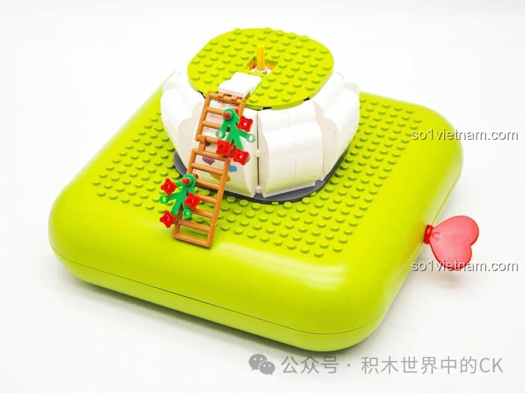 Điểm nhấn làm nên sự đặc biệt của bộ xếp hình Ngôi nhà chim hoa ZHEGAO 663014 chính là tính năng Hộp Nhạc Có Đèn LED & Âm Thanh độc đáo. Chỉ với một thao tác kéo nhẹ núm dây cót hình trái tim ở bên cạnh đế, mô hình sẽ phát ra những giai điệu du dương, êm ái, tạo nên không khí Lễ hội âm nhạc rừng xanh sống động. Đồng thời, đèn LED tích hợp bên trong ngôi nhà chim sẽ bừng sáng, chiếu rọi lung linh, biến mô hình thành một chiếc đèn ngủ đáng yêu hoặc vật trang trí đầy mê hoặc vào buổi tối. Tính năng này không chỉ tăng thêm sự hấp dẫn cho bộ đồ chơi Lễ hội âm nhạc rừng xanh mà còn kích thích thính giác và thị giác của bé, mang lại trải nghiệm chơi đa giác quan. Với Ngôi nhà chim hoa 663014, bé không chỉ lắp ráp mà còn được tương tác, thưởng thức âm nhạc và ánh sáng, tạo nên một thế giới riêng đầy màu sắc và âm thanh. Kiểu chi tiết Mini block (nhỏ hơn LEGO®) giúp các tính năng này được tích hợp một cách tinh tế và gọn gàng.