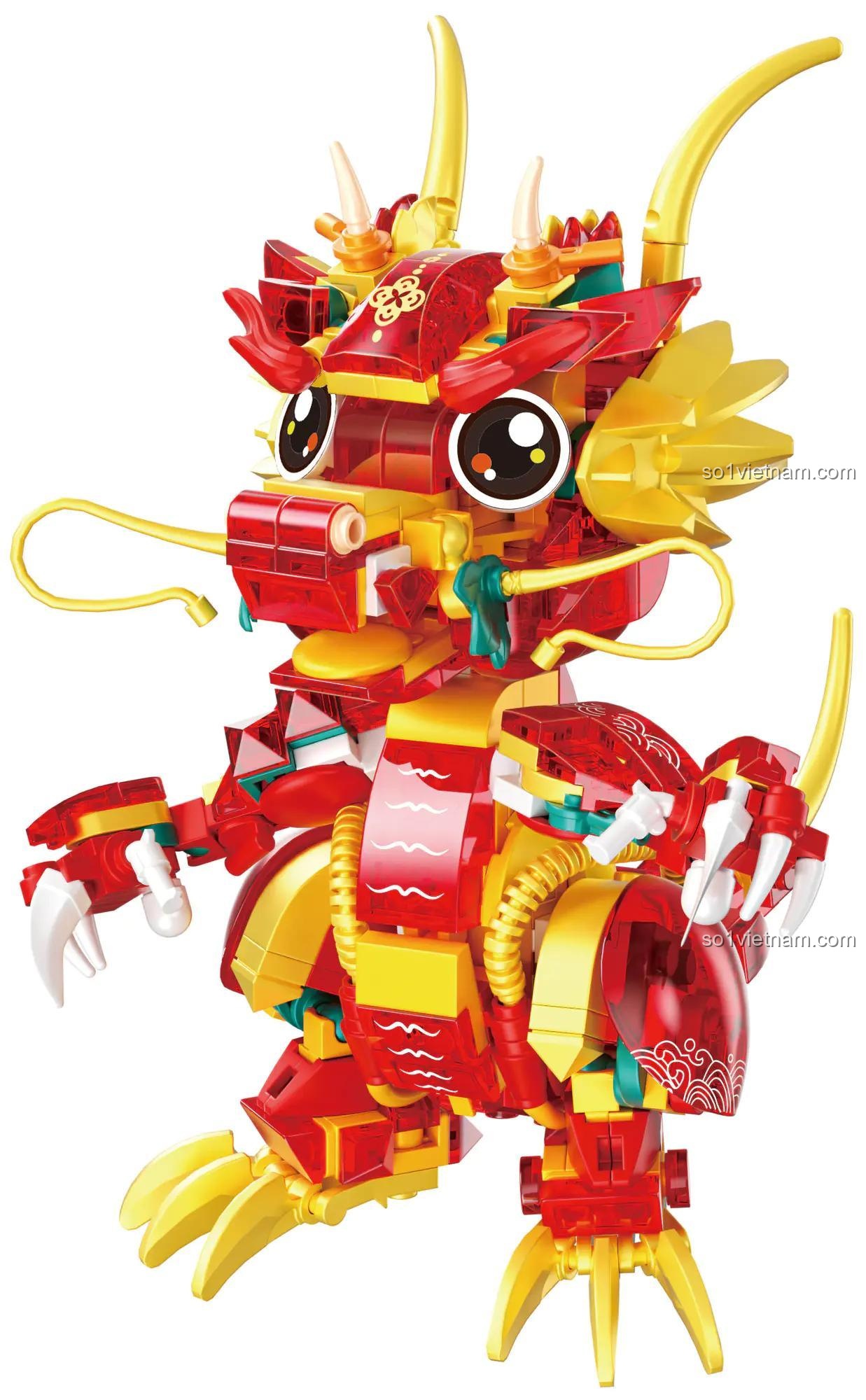 Mô hình Rồng Thần được chế tác tỉ mỉ với tông màu đỏ rực rỡ và vàng kim loại sang trọng, toát lên vẻ uy nghi và quyền lực. Các chi tiết như sừng rồng, bộ vuốt sắc nhọn, và thân rồng uốn lượn được tái hiện sống động, mang đến cảm giác như một sinh vật thần thoại đang hiện hữu. Bé sẽ thích thú khi lắp ráp từng mảnh ghép để hoàn thiện chú rồng hùng mạnh này, biểu tượng cho sức mạnh và sự thịnh vượng.