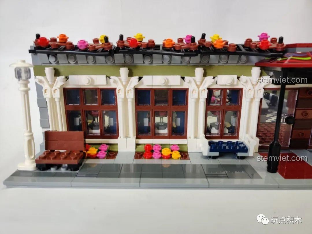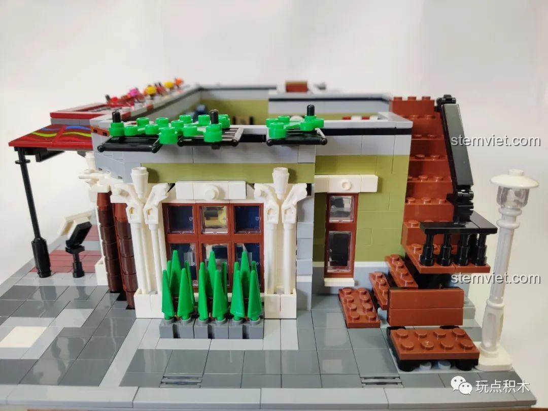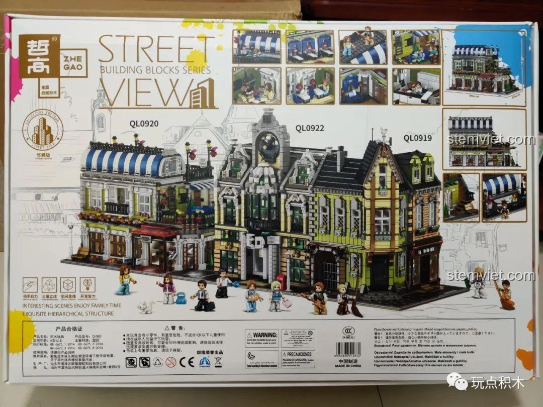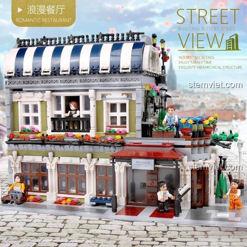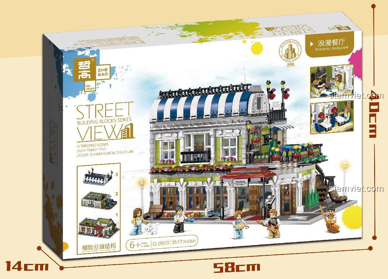 Bộ đồ chơi lắp ráp ZHEGAO QL0920 Nhà hàng lãng mạn thực sự là một tác phẩm nghệ thuật thu nhỏ. Với chiều dài mô hình 51.2 cm, chiều rộng 25.6 cm và chiều cao 35 cm, công trình này tái hiện một cách chân thực và sống động một nhà hàng kiểu châu Âu cổ kính. Màu sắc chủ đạo là sự kết hợp hài hòa giữa trắng, xanh dương, xanh lá, nâu, xám và đỏ, tạo nên một tổng thể vừa sang trọng vừa ấm cúng. Từng chi tiết nhỏ như mái vòm xanh trắng, ban công đầy hoa, cửa sổ lớn, và lối đi lát gạch đều được chăm chút tỉ mỉ, thể hiện độ chi tiết cao. Bạn sẽ tìm thấy những chiếc bàn ghế nhỏ xinh, quầy bar, và thậm chí cả một chú mèo đáng yêu cùng bánh sừng bò thơm ngon. Thiết kế mô-đun cho phép bạn dễ dàng tháo rời các tầng để khám phá nội thất bên trong, mang lại trải nghiệm chơi đa dạng và thú vị. Đây không chỉ là một bộ khối lắp ghép, mà còn là một tác phẩm kiến trúc thu nhỏ, giúp bé phát triển cảm nhận thẩm mỹ và khả năng quan sát.