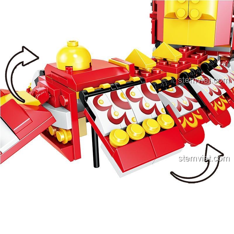 Bộ Mô hình Múa Lân Zhegao QL0956 không chỉ là một mô hình tĩnh mà còn sở hữu nhiều tính năng đặc biệt, mang lại trải nghiệm chơi thú vị và tương tác. Đầu lân và các đoạn thân lân được thiết kế với các khớp cử động linh hoạt, cho phép bé tái hiện những động tác múa lân uyển chuyển, sống động như thật. Các minifigures người múa lân cũng có thể được đặt vào các tư thế khác nhau, tạo nên những màn trình diễn độc đáo. Bé có thể tự do sáng tạo các điệu múa, kịch bản biểu diễn riêng, từ đó phát huy trí tưởng tượng và khả năng kể chuyện. Sự linh hoạt trong cử động giúp mô hình trở nên sống động hơn, khuyến khích bé tương tác và khám phá nhiều cách chơi khác nhau, mang lại niềm vui và sự hứng thú kéo dài.