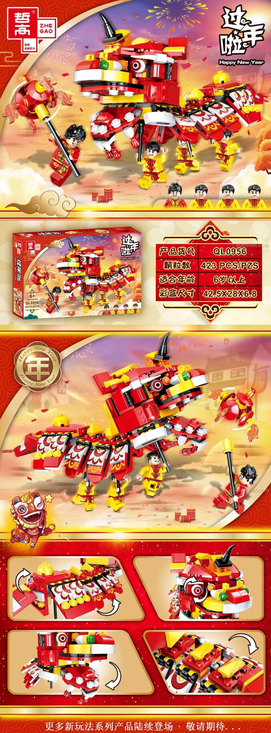 Bộ lắp ghép Zhegao QL0956 Múa Lân Chúc Mừng Năm Mới (423 mảnh) – Vũ Điệu Sắc Màu và Chủ đề Tết Nguyên Đán
