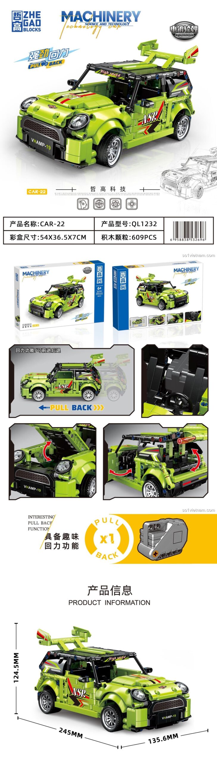 Bộ lắp ghép ZHEGAO QL1232 Xe đua CAR-22 hồi lực (609 mảnh) – Tốc Độ Vượt Trội và Động Cơ Kéo Lùi Mạnh Mẽ