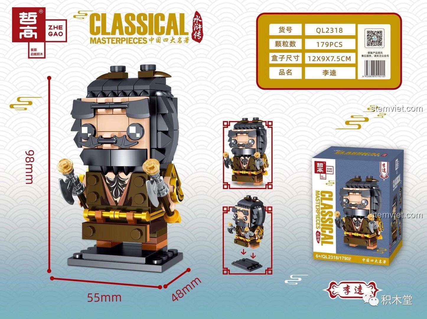 Bộ lắp ghép ZHEGAO QL2318 Lý Quỳ Thủy Hử (179 mảnh ghép) – Anh Hùng Lương Sơn và Mô hình BrickHeadz