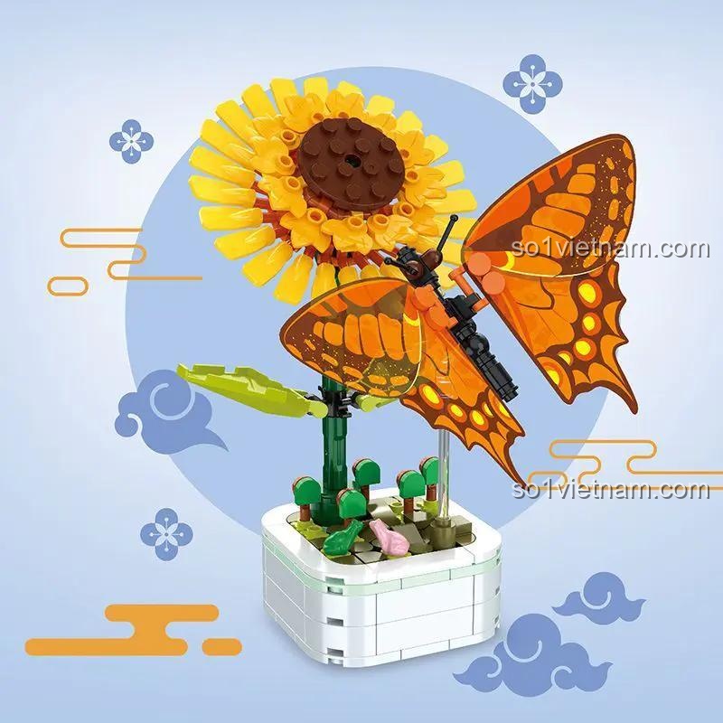 Bộ sản phẩm này được thiết kế để lắp thành một mô hình duy nhất là “Bướm Phượng Vàng Chậu Hoa Hướng Dương” với vẻ đẹp sống động và chi tiết.