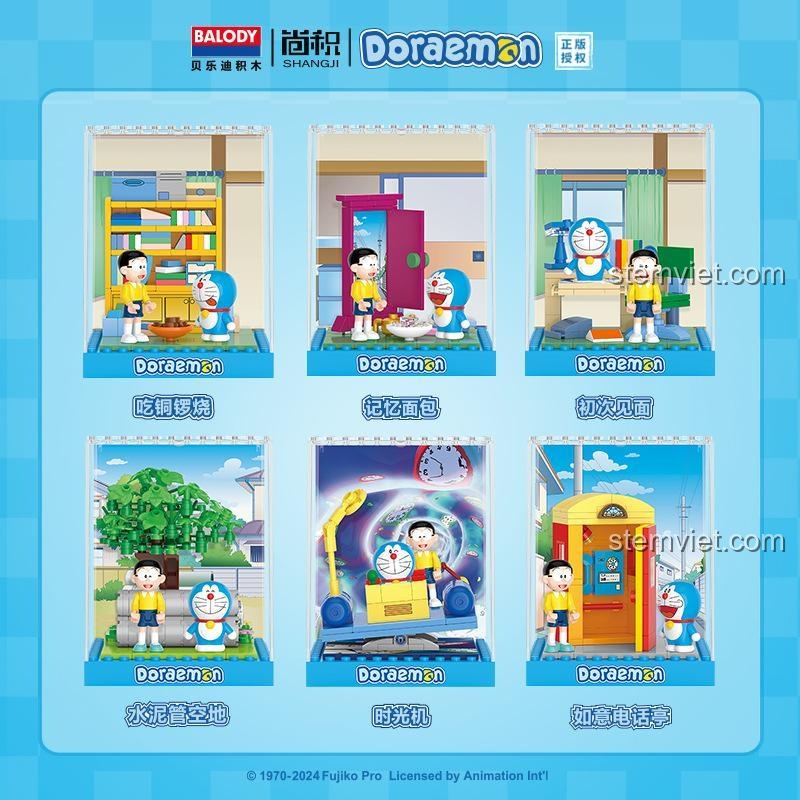 Bộ sản phẩm bao gồm 6 cảnh kinh điển khác nhau từ bộ truyện Doraemon, mỗi cảnh là một mô hình riêng biệt với các chi tiết đặc trưng, tạo nên một bộ sưu tập đa dạng và phong phú.