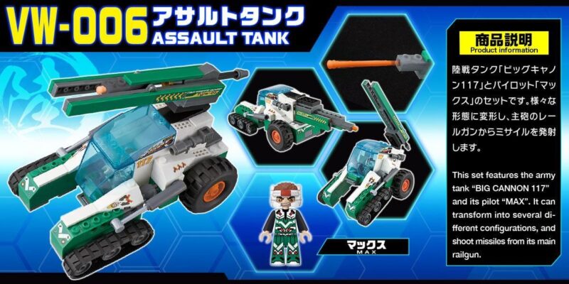Ngoài khả năng biến hình linh hoạt, Xe Tăng Tấn Công BIKKU VW-006 còn có tính năng bắn đạn nhựa từ khẩu railgun chính, tăng thêm phần kịch tính và chân thực cho các trận chiến giả lập của bé. Sản phẩm còn đi kèm minifigure phi công MAX.