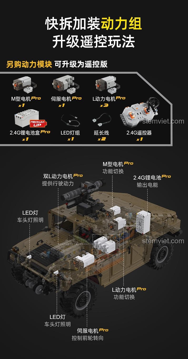Bộ đồ chơi Xe Humvee quân sự CaDA C61036 có thể nâng cấp thành phiên bản điều khiển từ xa không?