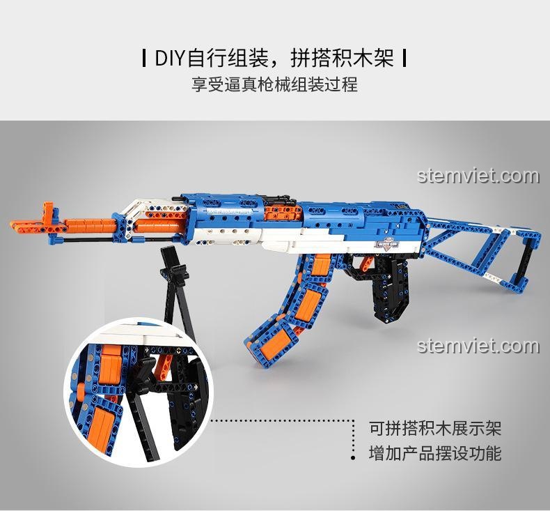 Mỗi mảnh ghép đều được gia công tỉ mỉ, đảm bảo độ chính xác cao khi lắp ráp. Từ báng súng, thân súng, nòng súng cho đến hộp tiếp đạn, mọi chi tiết đều được tái hiện một cách sống động. Đặc biệt, mô hình còn đi kèm một giá đỡ trưng bày, giúp bé có thể tự hào trưng bày tác phẩm của mình sau khi hoàn thành, biến nó thành một vật trang trí ấn tượng trong phòng. Đây không chỉ là một bộ đồ chơi Súng lắp ráp AK-47 mà còn là một tác phẩm nghệ thuật kỹ thuật.