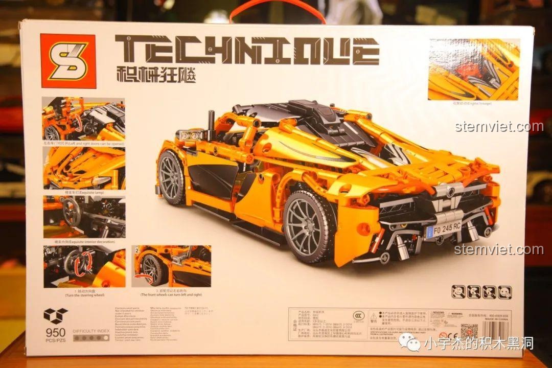 Bộ lắp ráp McLaren P1 Cada SY 8602 không chỉ là một món đồ chơi, mà là một tác phẩm nghệ thuật thu nhỏ. Với tỉ lệ 1:14, mô hình này tái hiện chân thực từng đường nét khí động học, từng chi tiết tinh xảo của siêu xe McLaren P1 huyền thoại. Màu sắc chủ đạo cam và đen tạo nên vẻ ngoài mạnh mẽ, nổi bật, đúng như phong cách đặc trưng của dòng xe này. Kích thước mô hình sau khi hoàn thiện là 32.5cm chiều dài, 17cm chiều rộng và 9.5cm chiều cao, đủ lớn để trưng bày ấn tượng nhưng vẫn gọn gàng. Từ đèn pha sắc sảo, lưới tản nhiệt hầm hố đến cánh gió sau thể thao và bộ mâm xe đa chấu độc đáo, mọi chi tiết đều được chăm chút tỉ mỉ. Ngay cả nội thất bên trong cũng được thiết kế với độ chính xác cao, mang đến trải nghiệm lắp ráp và khám phá đầy thú vị. Đây thực sự là một bộ xếp hình Cada 8602 mà bất kỳ tín đồ siêu xe nào cũng muốn sở hữu, một biểu tượng của sự hoàn hảo trong thiết kế và kỹ thuật.