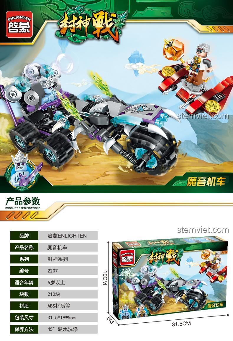 Chào mừng các bậc phụ huynh và các bé trai 6 tuổi đến với thế giới đầy kỳ diệu của bộ đồ chơi Xe Mô Tô Ma Âm Phong Thần Chiến Enlighten 2207! Bạn có biết, nguồn cảm hứng cho bộ đồ chơi lắp ráp này đến từ một trong Tứ Đại Danh Tác của văn học Trung Quốc – tiểu thuyết thần thoại Phong Thần Diễn Nghĩa? Tác phẩm vĩ đại này ra đời vào khoảng thế kỷ 16, thời nhà Minh, kể về cuộc chiến tranh giữa nhà Chu và nhà Thương, với sự tham gia của các vị thần, tiên, yêu quái và những nhân vật anh hùng huyền thoại.