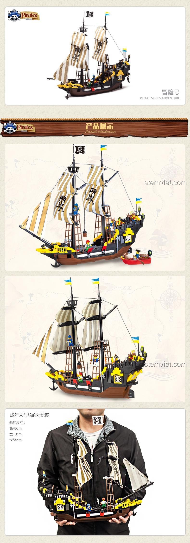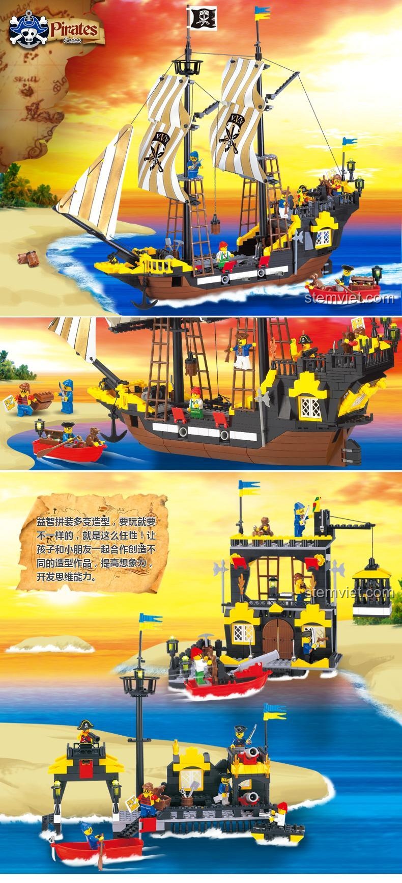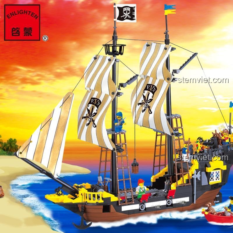 Chào mừng các thuyền trưởng nhí và các bậc phụ huynh đến với thế giới đầy bí ẩn và phiêu lưu của đại dương! Hôm nay, Kho đồ chơi trẻ em hân hạnh giới thiệu một kiệt tác lắp ráp không thể bỏ qua: bộ đồ chơi Tàu Hải Tặc Enlighten 307. Mặc dù không phải là một con tàu có thật trong lịch sử, nhưng Tàu Hải Tặc Corsair này lại mang trong mình linh hồn của những huyền thoại cướp biển lừng danh, lấy cảm hứng từ những câu chuyện phiêu lưu bất tận trong các tác phẩm hư cấu về hải tặc và những bộ phim phiêu lưu kinh điển.
