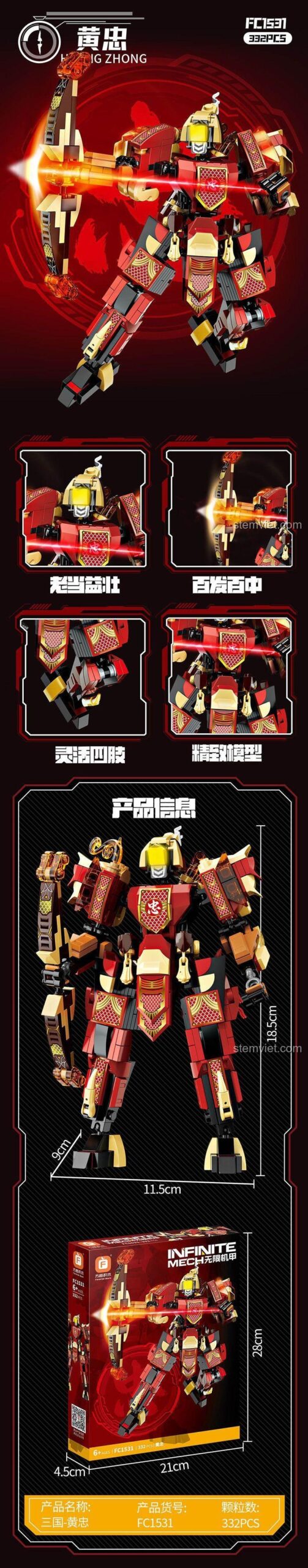 Bộ lắp ráp Forange FC1531 Mô Hình Cơ Giáp Hoàng Trung Tam Quốc 2.0 (332 mảnh ghép) – Chiến Thần Cơ Giáp và Thiết kế cơ giáp độc đáo