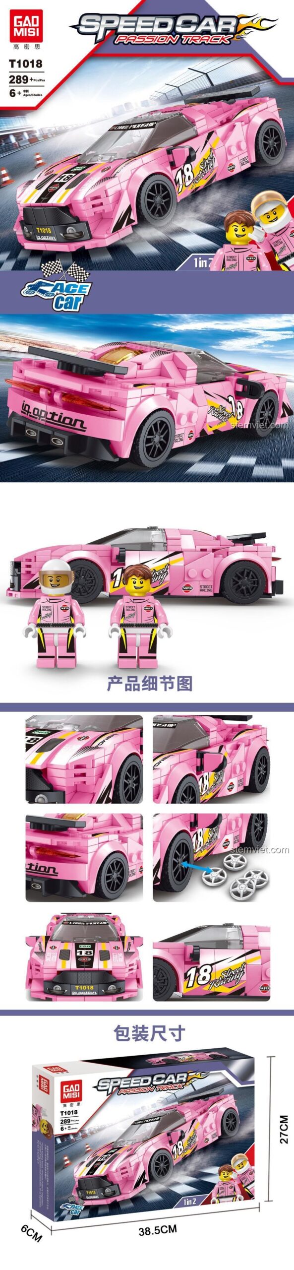 Điểm nổi bật của chiếc xe thể thao Aston Martin T1018 là thiết kế xe đua Aston Martin chân thực với màu hồng độc đáo, đi kèm 2 minifigure tay đua. Ngoài ra, xe còn có tính năng động cơ kéo lùi, giúp bé dễ dàng tạo ra những pha tăng tốc đầy kịch tính, mang lại trải nghiệm chơi đồ chơi mô hình GAOMISI T1018 sống động.