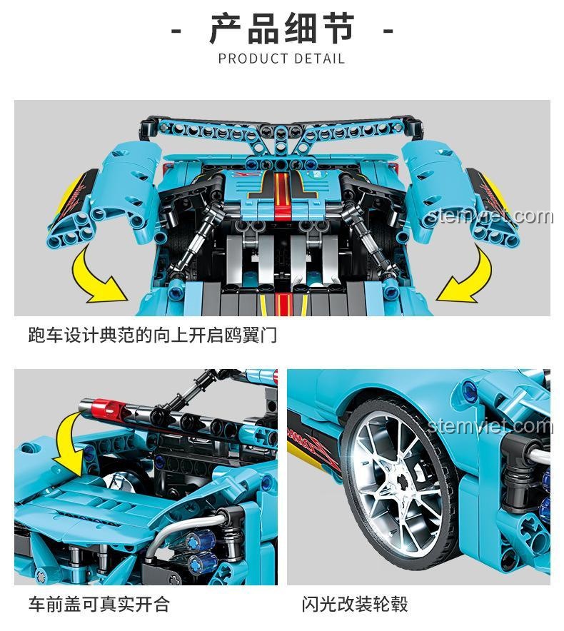 Điểm nhấn không thể bỏ qua chính là thiết kế cửa cánh chim độc đáo, có thể mở lên một cách mượt mà, tái hiện chân thực những siêu xe đắt giá nhất thế giới. Nắp capo phía trước cũng có thể mở ra, cho phép bé khám phá nội thất chi tiết bên trong. Đặc biệt, bộ đồ chơi lắp ghép Xe thể thao KY1048 này còn được trang bị bánh xe mạ điện sáng bóng, tăng thêm vẻ sang trọng và đẳng cấp cho mô hình. Cánh gió sau có thể tùy chỉnh, cho phép bé tự do sáng tạo và cá nhân hóa chiếc xe của mình.