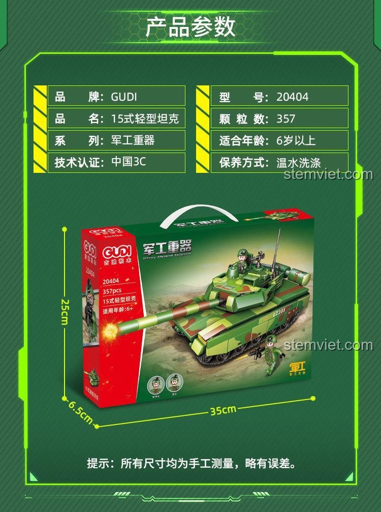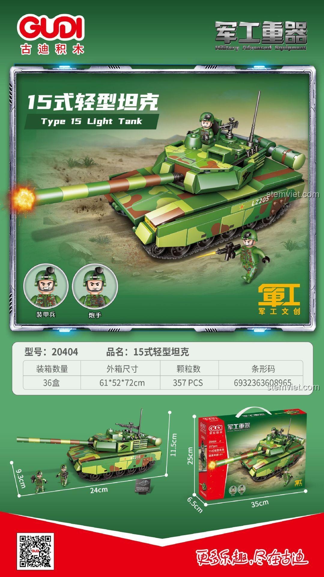 Bộ Lắp Ráp GUDI 20404 Xe Tăng Hạng Nhẹ Type 15 (357 Mảnh) – Sức Mạnh Quân Sự và Giá Tốt
