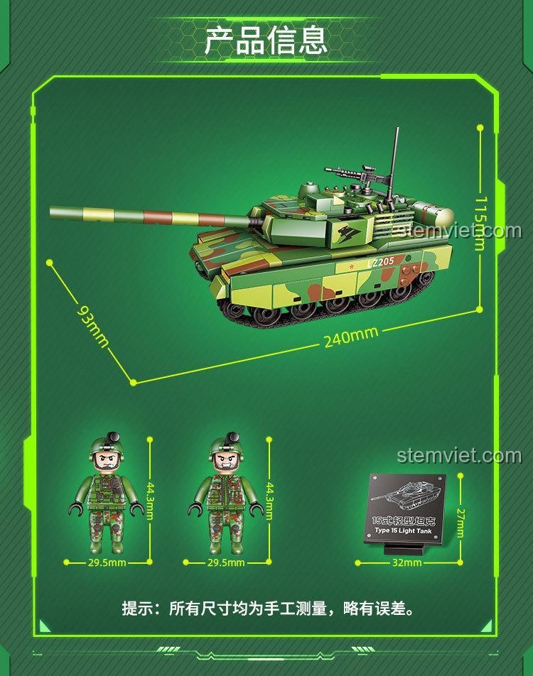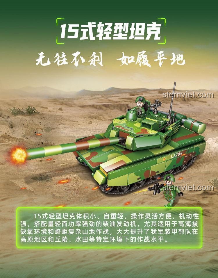 ⚙️ Tính Năng Độc Đáo: Đồ Chơi Xây Dựng Xe Tăng Hạng Nhẹ Type 15
