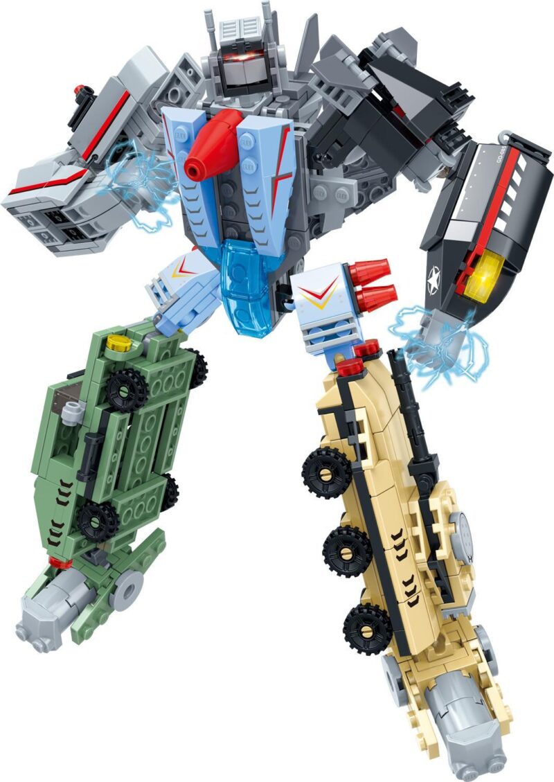 - **Hợp Thể Sức Mạnh:** Bé có thể tưởng tượng các phương tiện quân sự hợp nhất lại với nhau để tạo ra một siêu robot mới với sức mạnh vượt trội, sẵn sàng đối mặt với kẻ thù lớn nhất.