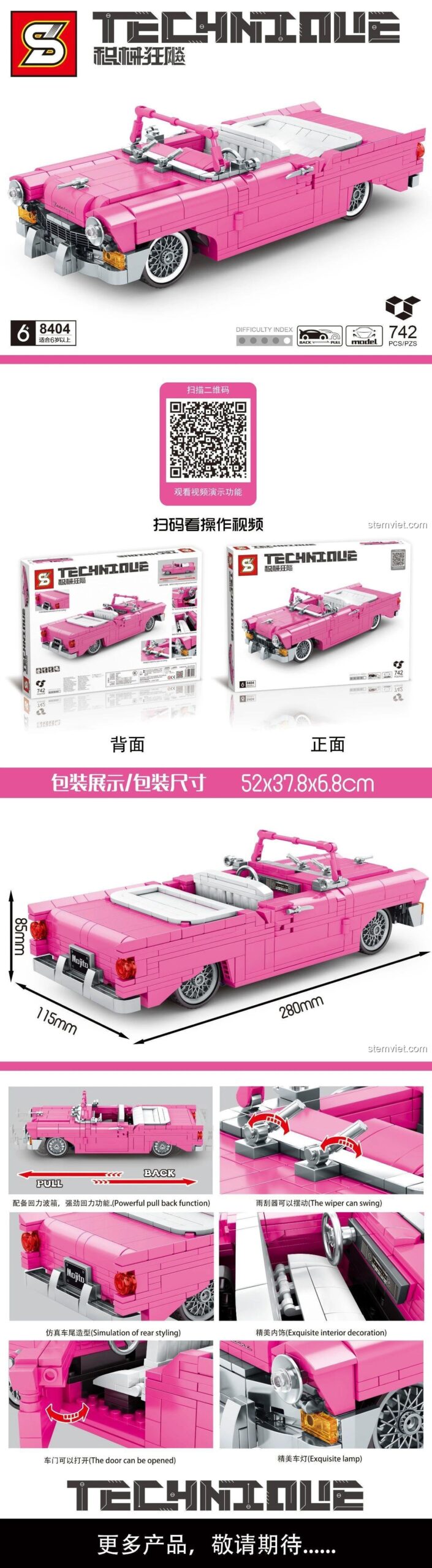🎨 Chiêm Ngưỡng Thiết Kế Tinh Xảo Của Đồ Chơi Lắp Ráp Xe Hơi Cổ Điển Màu Hồng 8404!
