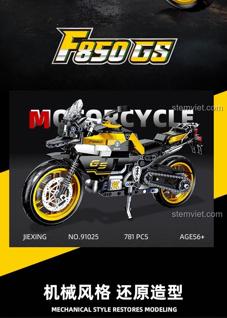 Bộ lắp ráp JIE STAR 91025 Mô tô BMW F 850 GS Adventure (781 mảnh) – Đam Mê Tốc Độ và Hệ Thống Truyền Động Cơ Khí