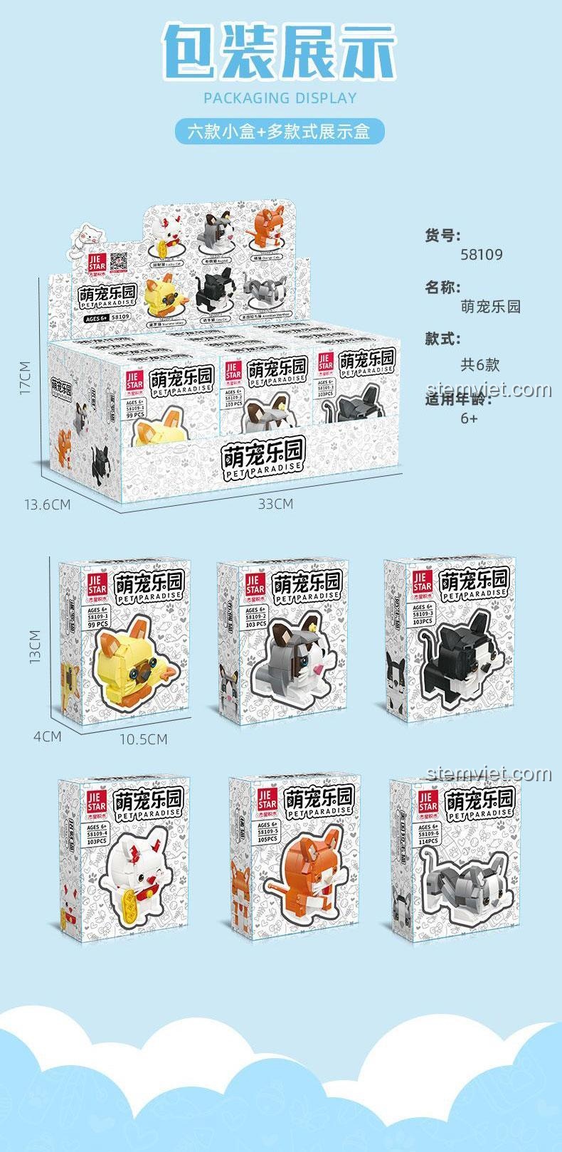 Bộ Lắp Ráp JIESTAR 58109 Mèo Cưng Đáng Yêu (627 mảnh ghép) – Thế Giới Mèo Cưng & Bộ 6 Mẫu Độc Đáo