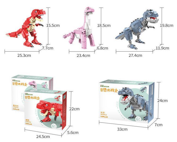 Kích thước của các mô hình khủng long trong bộ lắp ghép Kaishu QL1709 như thế nào?