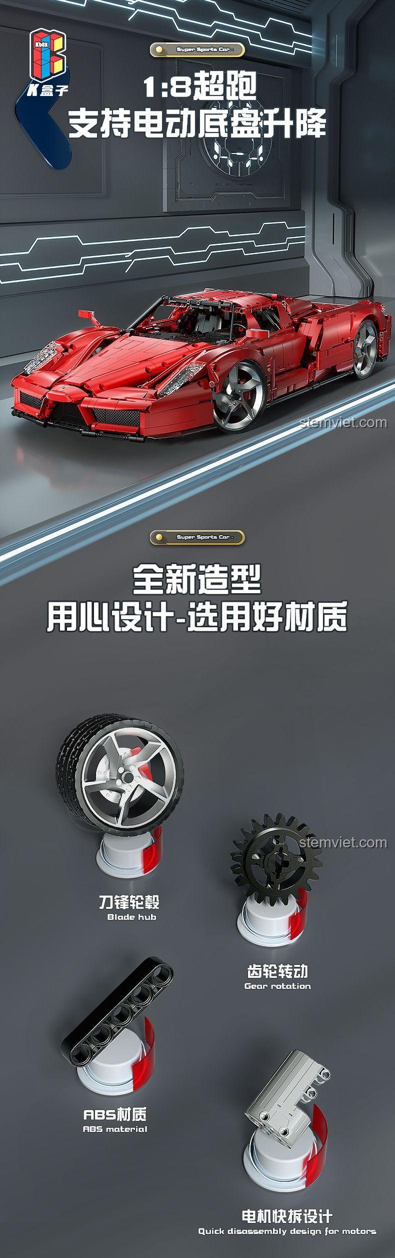 Điều đặc biệt hơn nữa là giá trị mà bộ lắp ráp KBOX Ferrari Enzo này mang lại. Với chất lượng và độ chi tiết tương đương với các bộ LEGO® Technic cao cấp, nhưng giá thành lại vô cùng hợp lý, chỉ bằng một phần nhỏ. Đây là lựa chọn siêu tiết kiệm, giúp bạn đỡ đau ví hơn hẳn mà bé vẫn có thể sở hữu một siêu phẩm đồ chơi mô hình Ferrari Enzo chất lượng vượt trội. Bạn hoàn toàn có thể an tâm về độ bền của sản phẩm, mô hình sẽ giữ được vẻ đẹp và sự chắc chắn qua thời gian, trở thành một món đồ trưng bày ấn tượng trong bộ sưu tập của bạn.