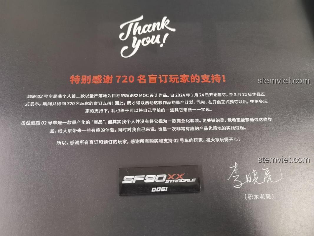 Hãy nhanh tay đặt hàng đồ chơi lắp ráp Siêu xe thể thao SF90 XX Stradale ngay hôm nay để mang về kiệt tác kỹ thuật này và cùng bé khám phá niềm đam mê tốc độ!