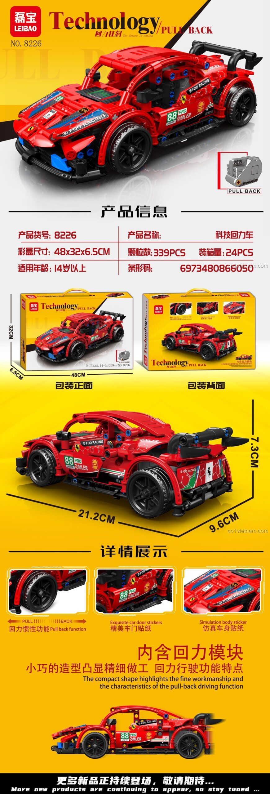Bộ Lắp Ráp LEIBAO 8226 Xe Đua Công Nghệ Kéo Lùi (339 Chi Tiết) – Tốc Độ Đỉnh Cao và Động Cơ Kéo Lùi Mạnh Mẽ