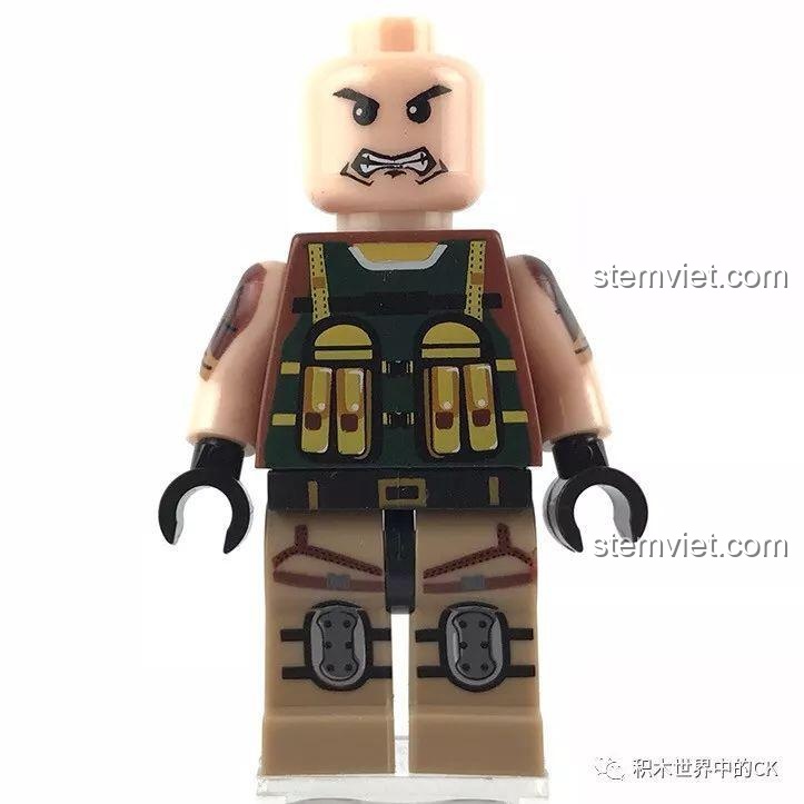 Đi kèm với các cảnh quan là 4 minifigure lính được thiết kế cực kỳ ngầu, mỗi nhân vật đều có trang phục rằn ri đặc trưng và biểu cảm khuôn mặt mạnh mẽ, sẵn sàng cho mọi cuộc đối đầu. Các minifigure được trang bị vũ khí đa dạng như súng trường và súng bắn tỉa, cùng các phụ kiện như mặt nạ khí và mũ bảo hiểm, tăng thêm tính chân thực cho mô hình. Màu sắc chủ đạo của bộ đồ chơi là xám, đen, xanh lá, nâu, trắng và cam, tạo nên một tổng thể hài hòa và đúng chất chiến trường. Với bộ xếp hình Nhân Vật PUBG này, bé sẽ có cả một đội quân để dàn trận!