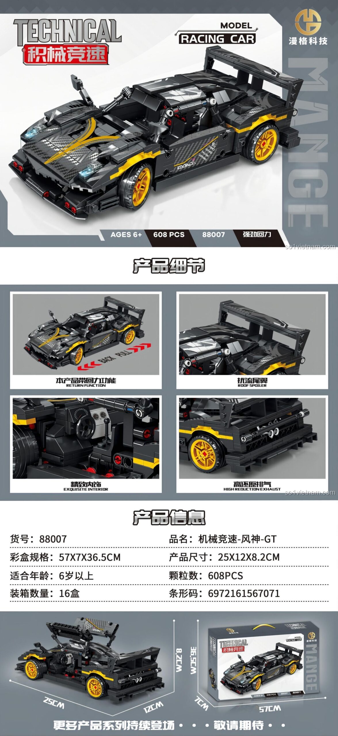 Bộ lắp ráp Mange 88007 Xe Đua Cơ Khí Phong Thần GT Hồi Lực (608 chi tiết) – Tốc Độ Kinh Hoàng và Động cơ kéo lùi