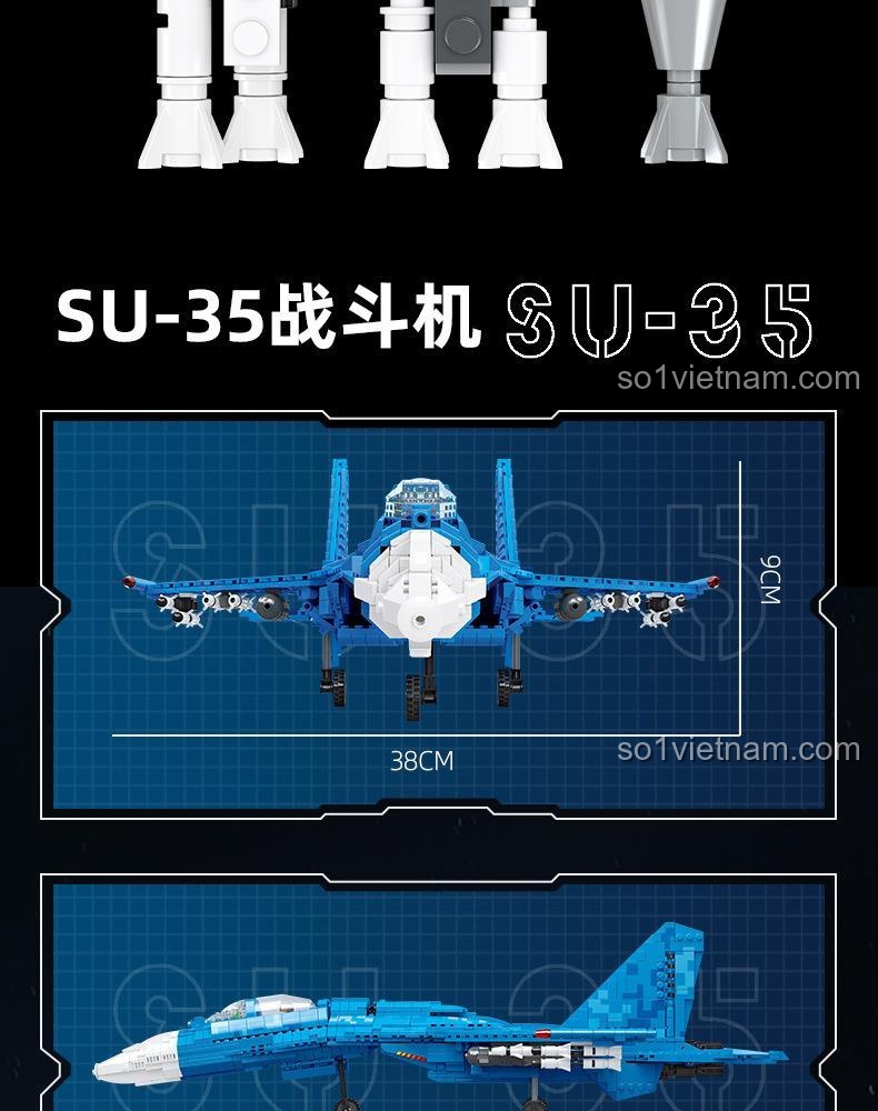 Mô hình máy bay chiến đấu SU-35 sau khi hoàn thành có kích thước ấn tượng: Dài 63cm x Rộng 38cm x Cao 9cm.