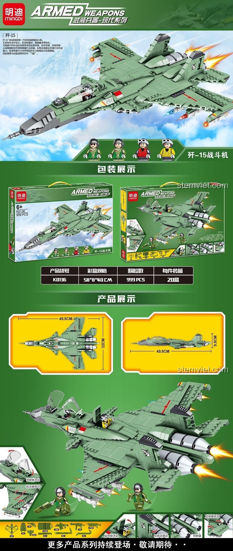 Hãy sắm ngay bộ xếp hình Máy bay quân sự J-15 Mingdi K0136 để bé trai của bạn thỏa sức khám phá thế giới không quân và phát triển tư duy sáng tạo!