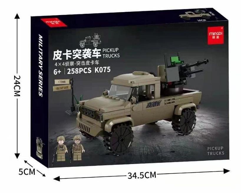 Bộ lắp ráp Mingdi K075 Xe Bán Tải Quân Sự 4×4 Trinh Sát (258 mảnh ghép) – Chiến Trường Thu Nhỏ và Giá Rẻ