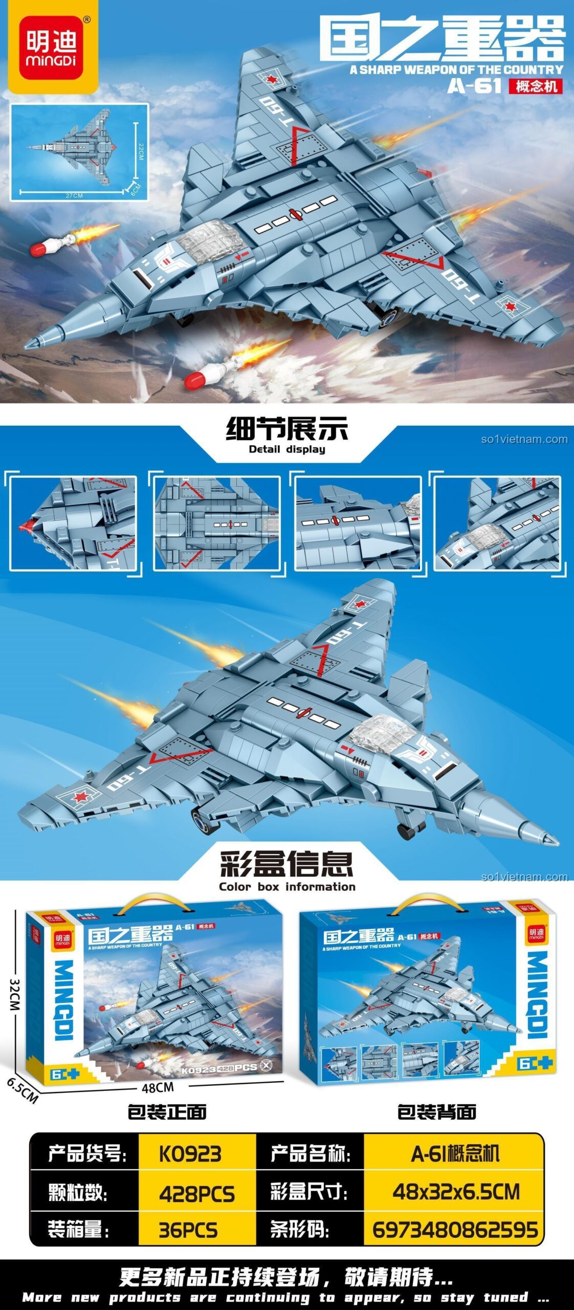 Bạn đang tìm kiếm một món quà ý nghĩa và độc đáo cho bé trai của mình? Bộ lắp ráp Mingdi K0923 Máy bay chiến đấu tàng hình A-61 Concept chính là lựa chọn hoàn hảo! Đây sẽ là phần thưởng xứng đáng cho bé sau kỳ thi cuối kỳ, một món quà sinh nhật vừa ý nghĩa vừa tiết kiệm cho bố mẹ, hoặc một bất ngờ thú vị dịp Tết Thiếu Nhi 1/6 sắp tới! Hãy nhanh tay sở hữu ngay hôm nay để bé yêu có thể thỏa sức khám phá và sáng tạo với chiếc chiến cơ tương lai này.