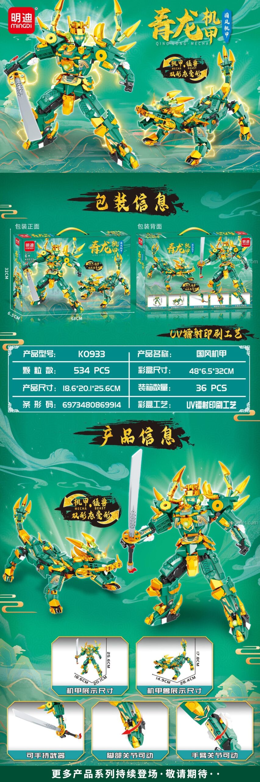 Trọng tâm của bộ sản phẩm là mô hình Mecha Thanh Long có khả năng biến hình và thanh kiếm đi kèm. Hiện tại, nhà sản xuất chưa công bố thêm các phụ kiện khác trong hộp này.