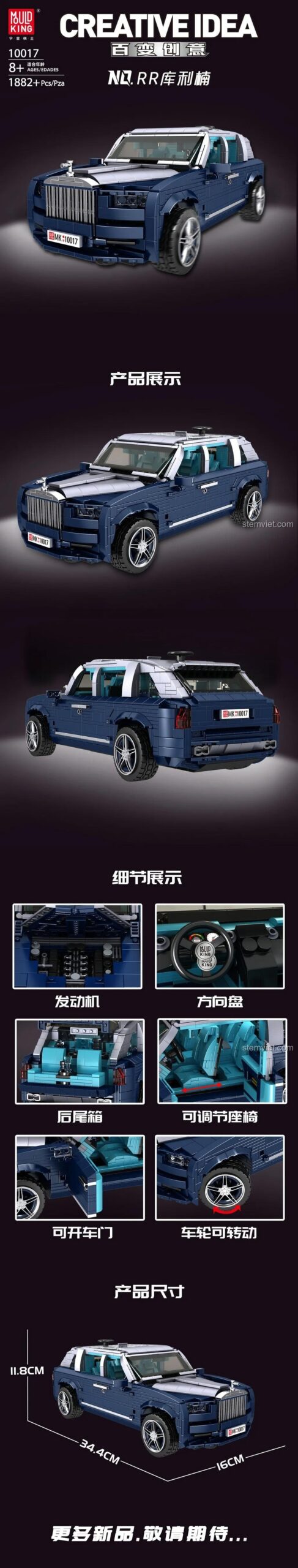 ❓ Mô hình Mould King 10017 Rolls-Royce Cullinan này có những tính năng gì đặc biệt?