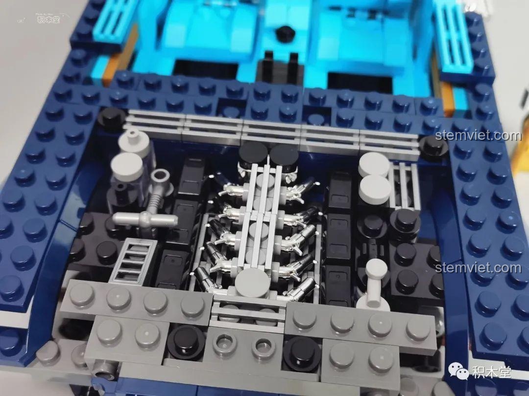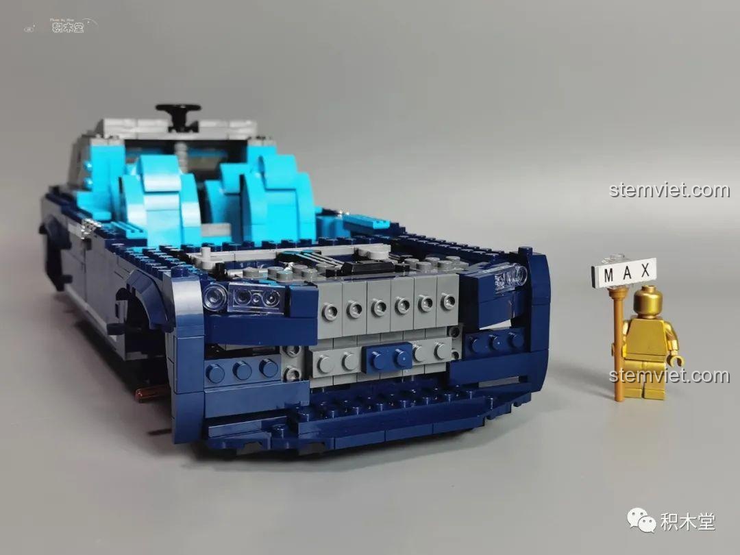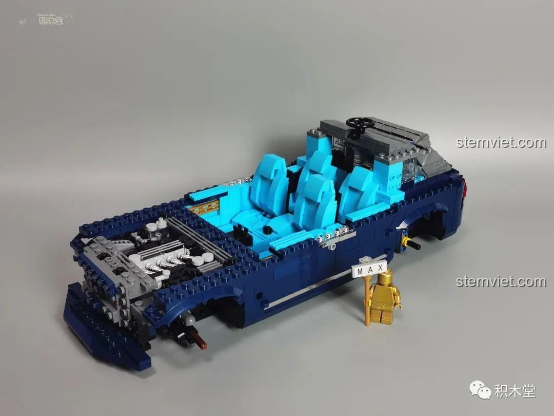 Điểm nhấn đặc biệt của bộ đồ chơi mô hình này là nội thất chi tiết đến kinh ngạc. Bạn sẽ tìm thấy các ghế ngồi có thể trượt và ngả, vô lăng có thể điều chỉnh, và một bảng điều khiển được mô phỏng sống động. Các chi tiết nhỏ như gương chiếu hậu, tay nắm cửa, và hệ thống ống xả kép cũng được chăm chút tỉ mỉ, mang lại cảm giác như đang chiêm ngưỡng một chiếc xe thật. Đây là một bộ xếp hình Mould King 10017 không chỉ để trưng bày mà còn để khám phá, giúp bạn hiểu rõ hơn về cấu trúc và thiết kế của một chiếc xe hơi cao cấp.